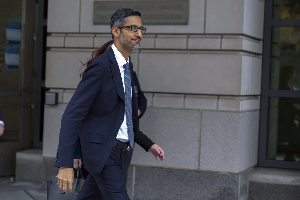 CEO Sundar Pichai leaves the federal courthouse in Washington, Monday, Oct. 30, 2023. Photo: AP Photo/Jose Luis Magana