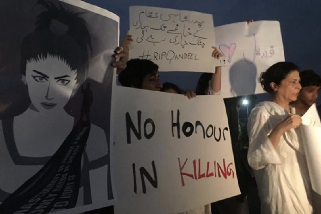 Protesters against honor killing mourn for Qandeel Baloch after her death in 2016. Photo: Alia Chughtai/Al Jazeera