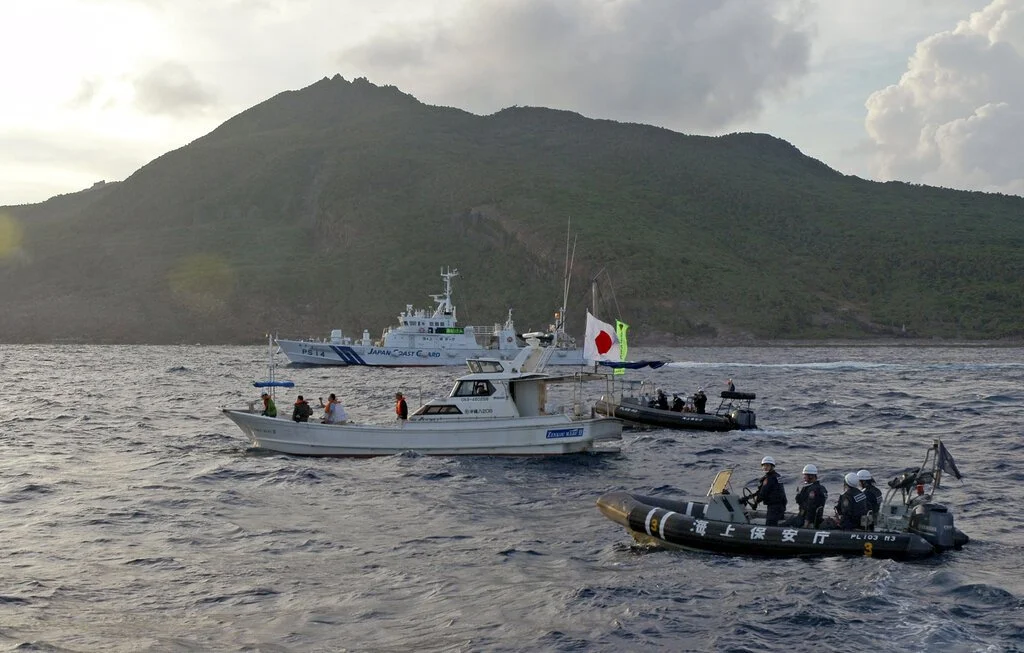 Japanese Coast Guard ships sail near the island chain referred to as Senkaku by Japan and Diaoyu by China. Both claim the islands as their own. Photo: AP News/Emily Wang