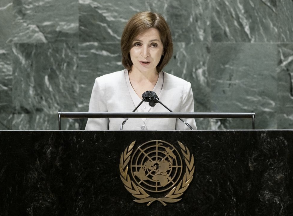Moldovan President Maia Sandu addressing the General Debate during the 76th session of the United Nations General Assembly on Sept. 22, 2021, at the UN headquarters in New York City. Photo: Justin Lane/ Photo Pool via Associated Press