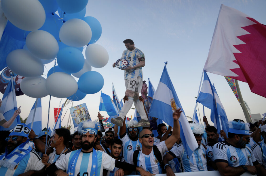 Argentina fans cheer for star player Lionel Messi as they await the FIFA World Cup tournament in Doha, Qatar on Nov. 11, 2022 (AP Photo/Hassan Ammar)