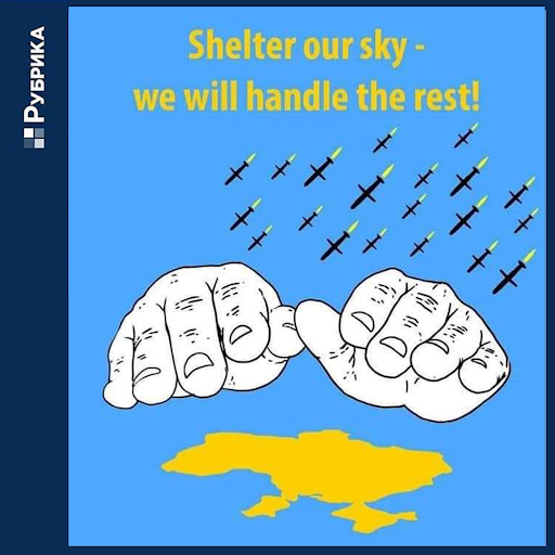A poster design popular among Ukrainian-Americans on social media, encouraging a NATO “no fly zone” over Ukraine. Graphic: Natalya Sokhatska via Instagram.