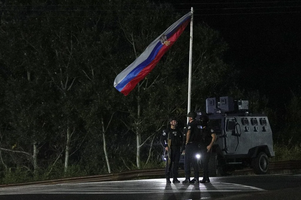Kosovo police officers guard road near the village of Banjska, northern Kosovo, Sept. 24, 2023. (AP Photo/Bojan Slavkovic, File)