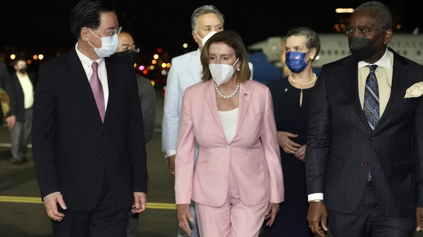 Pelosi arriving in Taipei on Aug. 22, 2022, accompanied by Taiwan's Foreign Minister Joseph Wu. Source: Taiwan Ministry of Foreign Affairs via AP