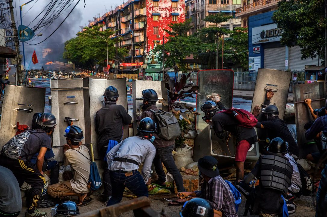 Protestors in Yangon, Mar. 2021. Photo: New York Times