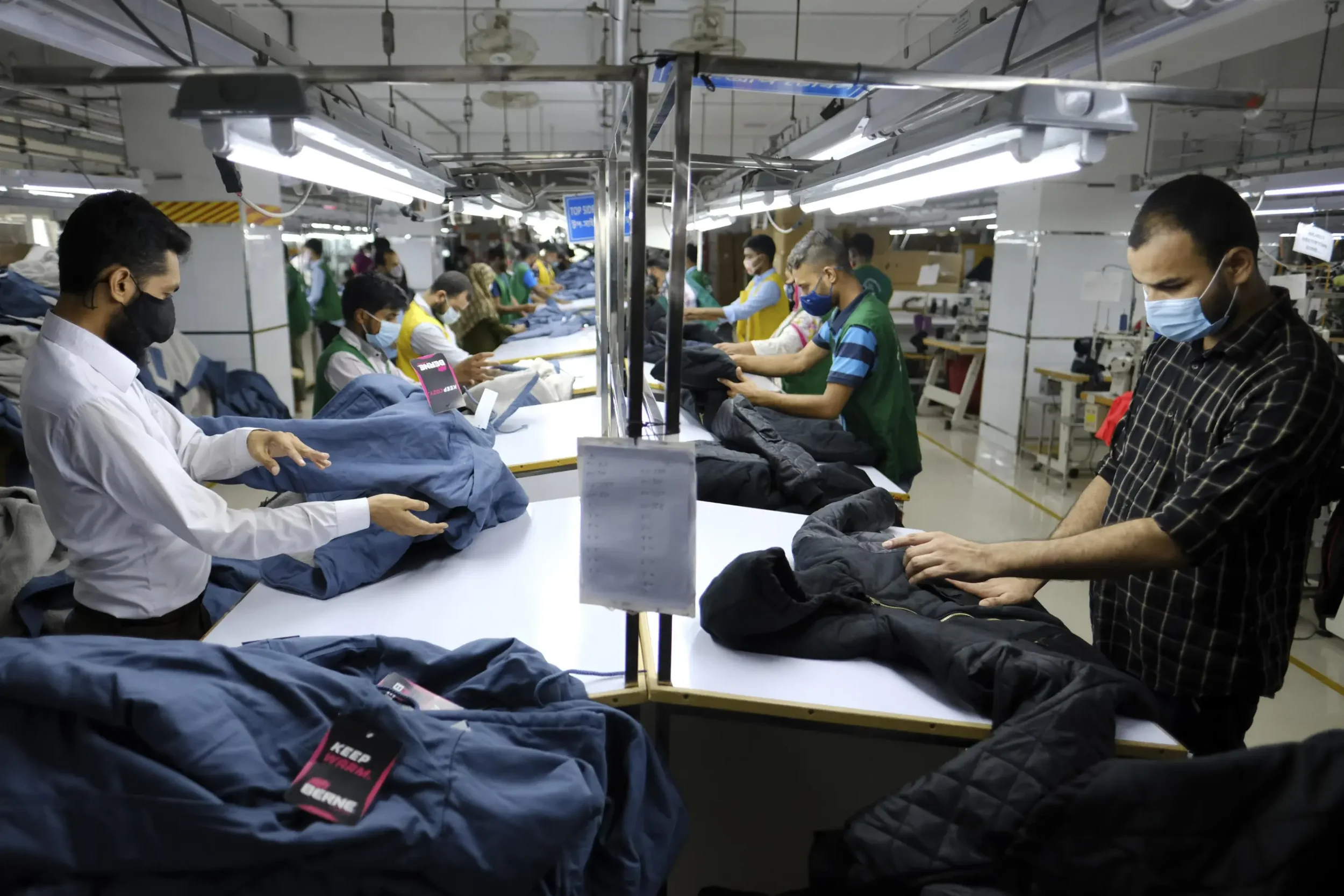 Aug 9, 2021 - Garment employees check final products for shipment at Snowtex Outwear Ltd. factory in Savar Bangladesh. (AP Photo/Mahmud Hossain Opu)