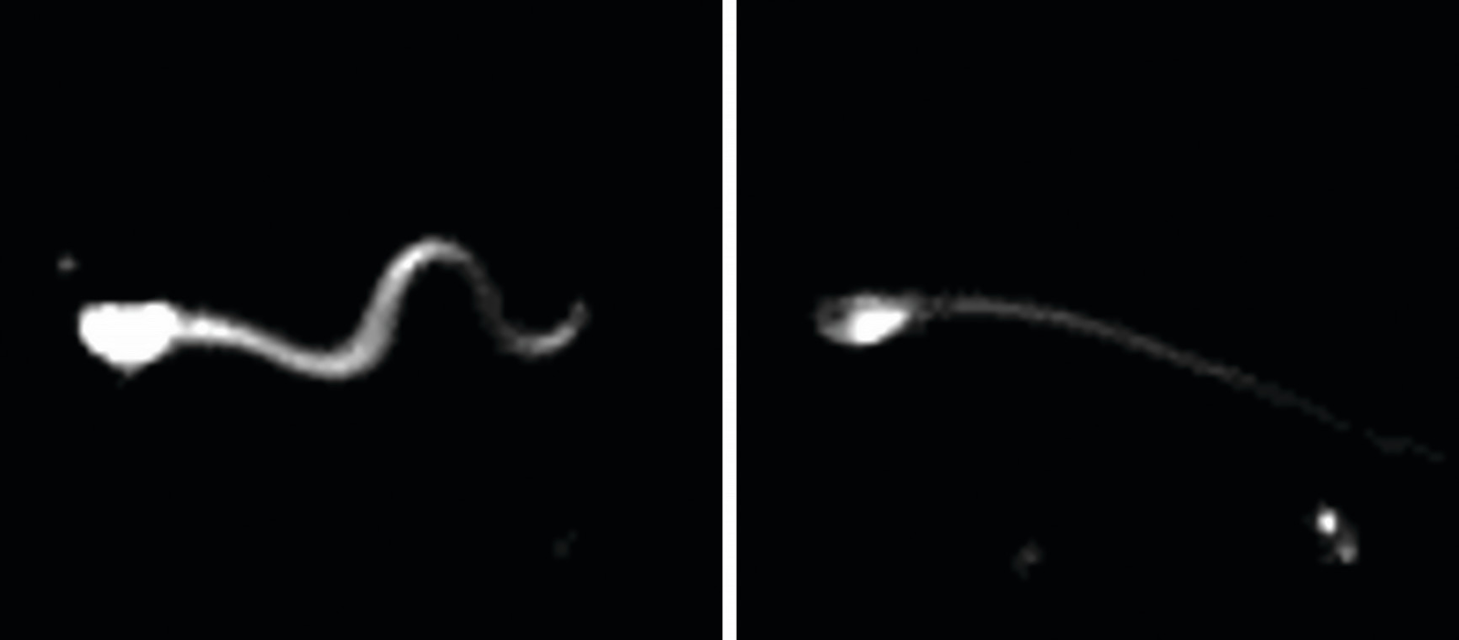 The difference between sperm with SAC and the stunned sperm with the SAC inhibitor. Photo: Melanie Balbach, LevBuck Laboratory, Weill Cornell Medicine