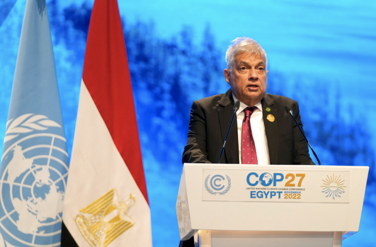 Ranil Wickremesinghe, president of Sri Lanka, speaks at the COP27 U.N. Climate Summit, Tuesday, Nov. 8, in Sharm el-Sheikh, Egypt. Photo: Peter Dejong/AP