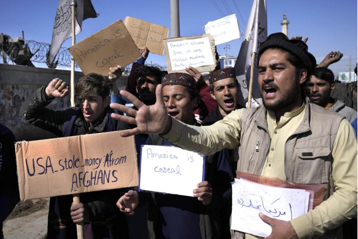 Afghans protest against part of their frozen funds being distributed among Americans. Photo: AP News