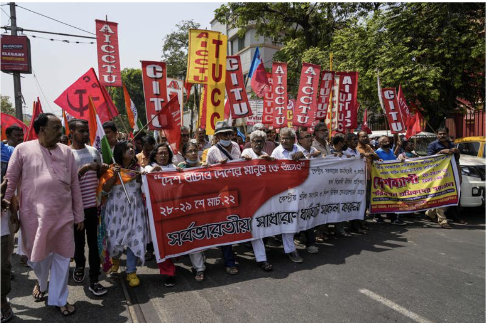 Workers in India Go on Strike, Demanding Better Pay and Conditions