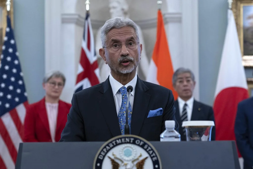 Indian External Affairs Minister Subrahmanyam Jaishankar flanked by from left, Australian Foreign Minister Penny Wong, Japanese Foreign Minister Iwaya Takeshi and Secretary of State Marco Rubio speaks to the media before the Indo-Pacific Quad meeting at the State Department in Washington, Tuesday, July 1, 2025. (AP Photo/Jose Luis Magana)