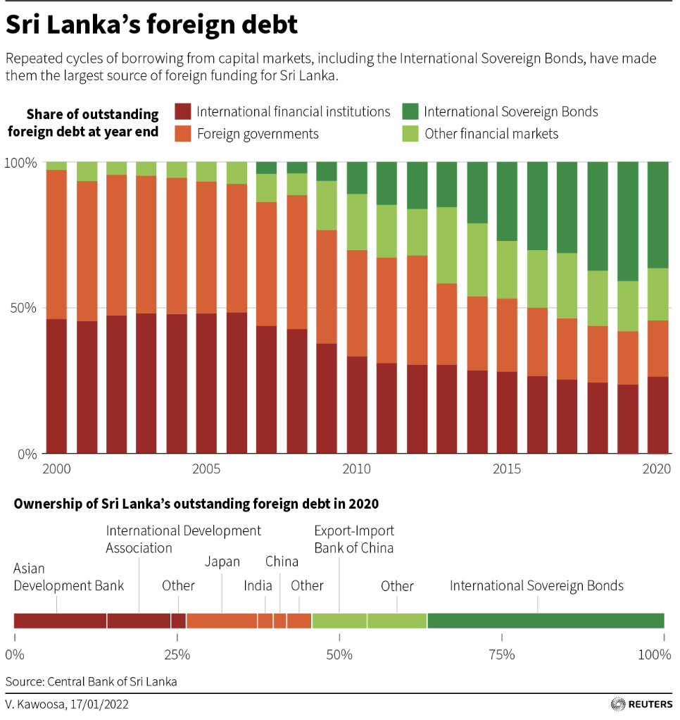 The Sri Lankan government was particularly hit hard by the pandemic, losing out on its tourism revenue and attempting to recover from poorly time pre-pandemic tax cuts. Since then their economy has rapidly deteriorated, worsening its ability to pay back its debts.
