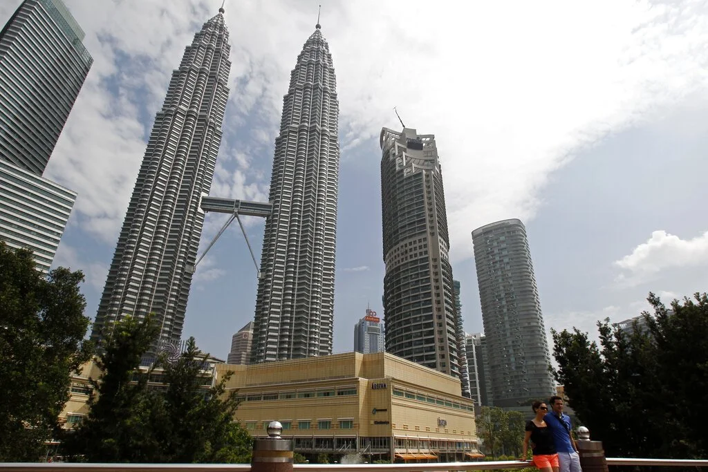 Tourists pose for a photo in front of Malaysia's landmark Petronas Twin Towers as haze dissipated overnight, in Kuala Lumpur, Malaysia, Thursday, June 27, 2013. Singapore suffered its worst haze in history last week after blazes in peat swamp forests on Indonesia's Sumatra island sent massive plumes of smog across the sea to neighboring Singapore and Malaysia. (AP Photo/Lai Seng Sin)