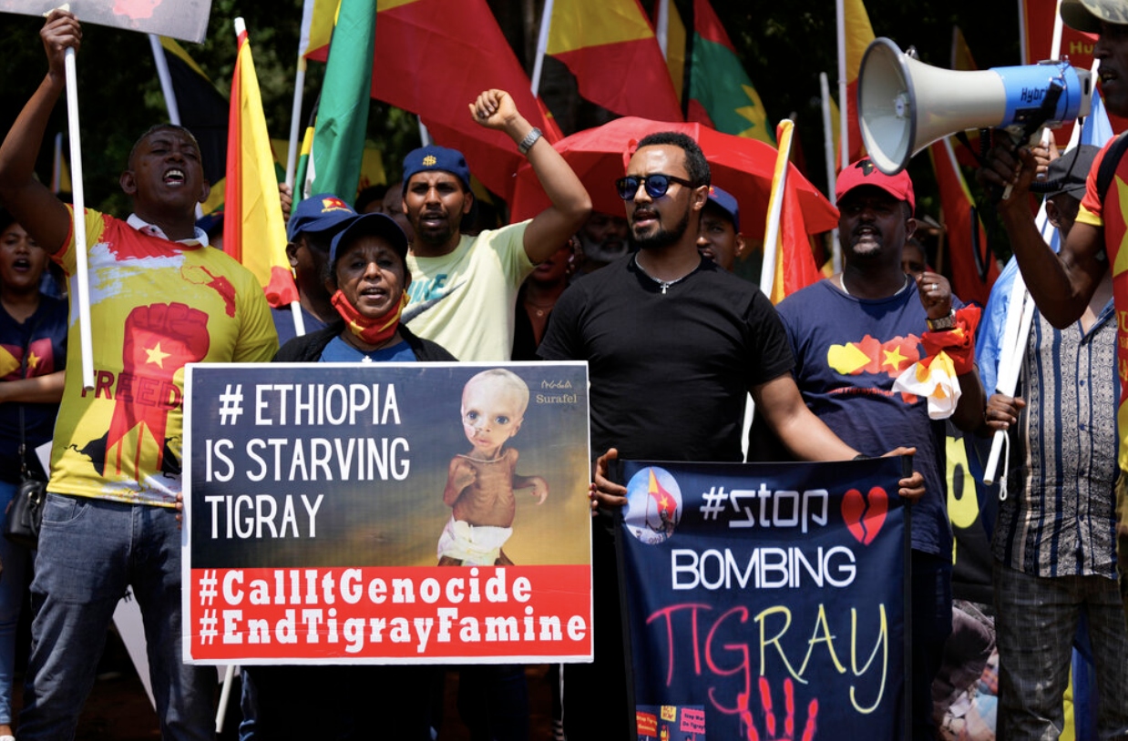 People from Tigray protesting the conflict between the Tigray rebels and the Ethiopian government outside the United Arab Emirates in Pretoria, South Africa, on Wednesday. Photo: Themba Hadebe/Associated Press