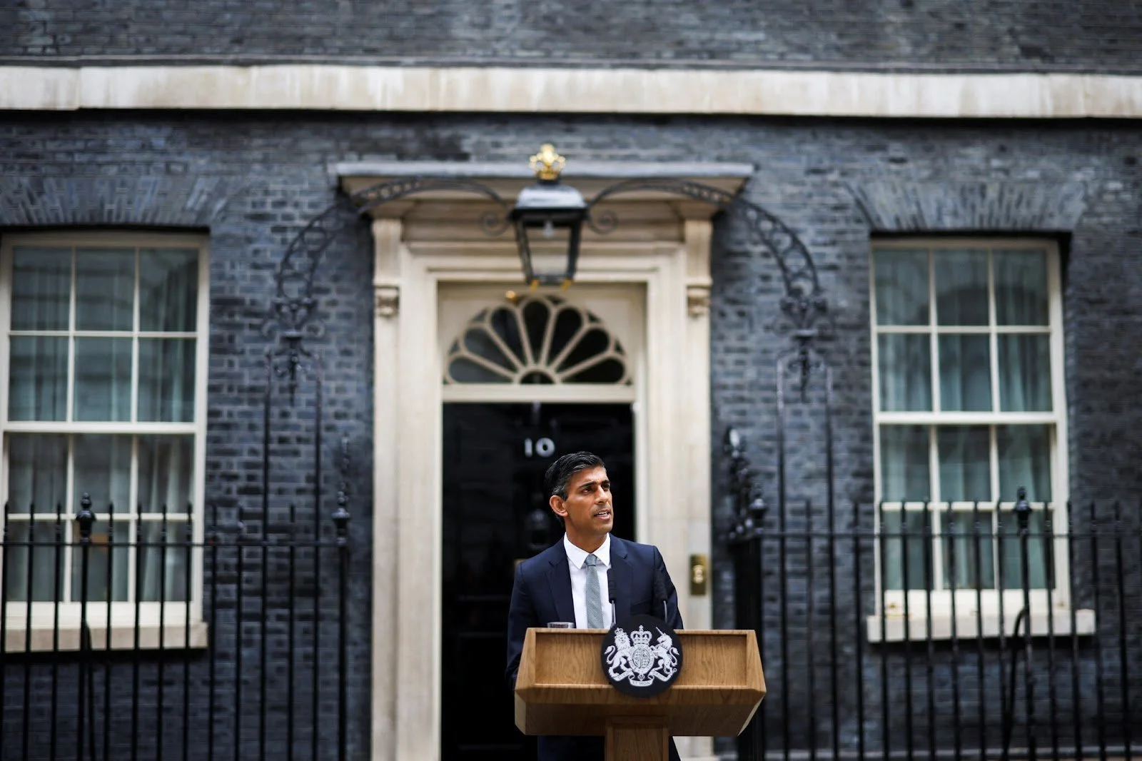 Rishi Sunak outside of 10 Downing Street, giving his first speech as prime minister. Photo: New York Times